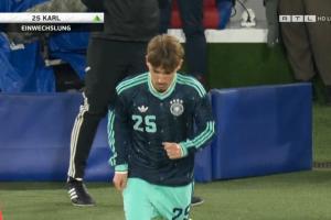 体育资讯03月28日讯 友谊赛德国对阵瑞士,63分钟,18岁卡尔替补出场换下萨内,迎来德国队首秀。