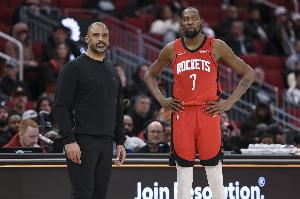 体育资讯3月6日讯 NBA常规赛,火箭在主场以113-115加时不敌勇士。赛后,杜兰特接受采访。