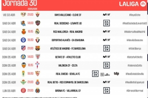 体育资讯3月14日讯 西甲官方公布了第30轮比赛时间,4月4日22点15分马略卡vs皇马,4月5日3点马竞vs巴萨。