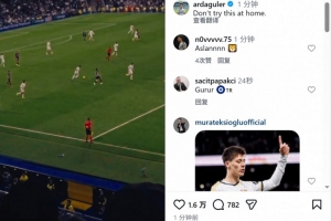 居莱尔社媒晒出吊射破门的视频,调侃配文:“不要在家里尝试这个。”