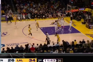 下一篇: 打小哈达威头上~詹姆斯失误后奋力回追 犯规破坏对手快攻
